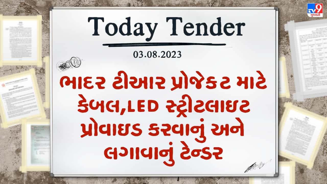 પોરબંદર જિલ્લામાં પ્રોવાઇડિંગ એન્ડ ઇરેક્ટિંગ કેબલ, LED સ્ટ્રીટલાઇટ/ફલ્ડલાઇટ, પોલ બોક્સ, પોલ બ્રેકેટ એન્ડ અધર ઇલેક્ટ્રીક વર્ક્સ એટ ભાદર ટીઆર પ્રોજેક્ટ માટે ટેન્ડર જાહેર કરાયુ છે. આ ટેન્ડરની અંદાજીત રકમ 3,27,648.00 રુપિયા છે. કોરા ટેન્ડર ઇસ્યુ કરવાની તારીખ 2 ઓગસ્ટથી 9 ઓગસ્ટ 2023 સાંજે 6 કલાક સુધીની છે. ટેન્ડર પરત કરવાની તારીખ 10 ઓગસ્ટથી 22 ઓગસ્ટ 2023 સાંજે 6 કલાક સુધીની છે. ટેન્ડર ખોલવાની તારીખ 23 ઓગસ્ટ 2023 બપોરે 1 કલાકની છે. ટેન્ડર અંગેની વધુ માહિતી www.statetenders.gujarat.gov.in વેબસાઇટ પરથી મળી રહેશે.