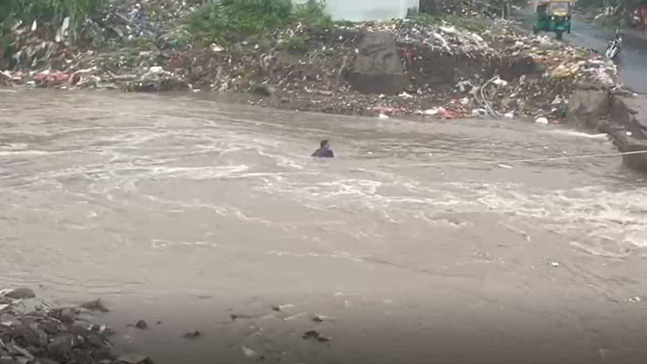 RAJKOT : મોટા મવા પાસે એક બાઇકસવાર તણાયો, સ્થાનિકોએ મહામુસિબતે યુવકને બચાવ્યો