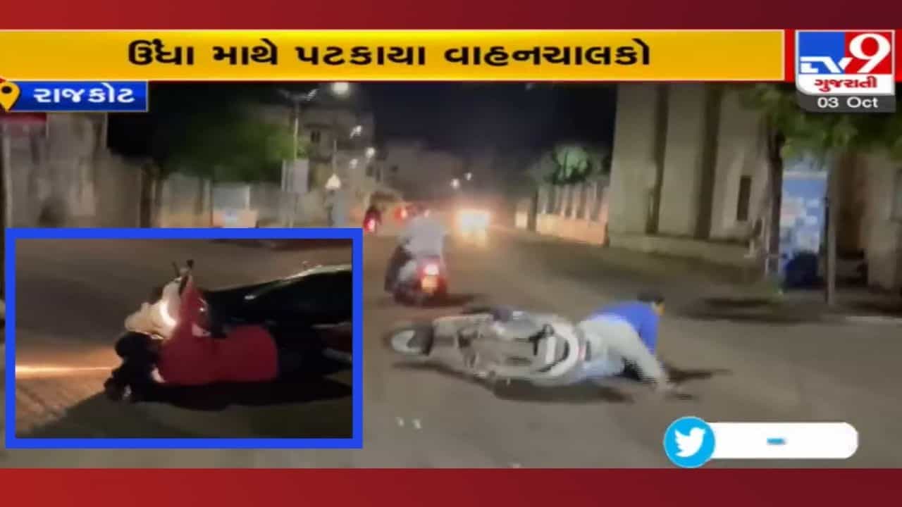 એ ધડામ! રાજકોટમાં ખરાબ રસ્તાના કારણે એક, બે નહીં, સર્જાયા અનેક અકસ્માત – જુઓ Video