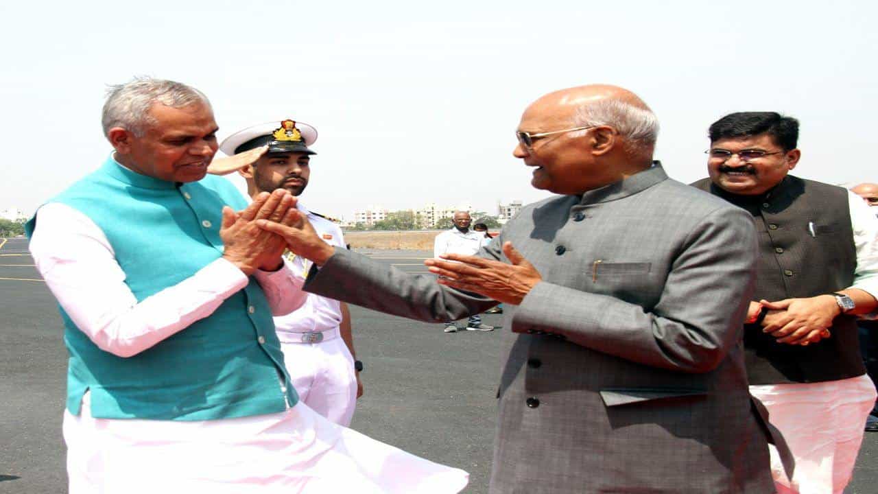 રાષ્ટ્રપતિ રામનાથ કોવિંદનું રાજકોટ એરપોર્ટ પર કરાયું સ્વાગત