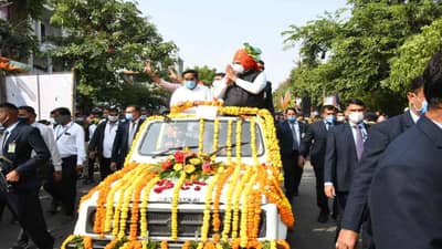મુખ્યમંત્રી ભુપેન્દ્ર પટેલનું સુશાસન સતાહના રાજ્યકક્ષાના સમાપન સમારોહના ભાગરૂપે રાજકોટ ખાતે આગમન થતા એરપોર્ટ પર તેમનું ભવ્ય સ્વાગત કરવામાં આવ્યું હતું. મુખ્યમંત્રીની સાથે નવસારીના સાંસદ અને ભાજપ અધ્યક્ષ સી.આર. પટેલ તેમજ રાજ્ય મંત્રીમંડળના વરિષ્ઠ મંત્રીઓ તેમજ શહેર જિલ્લા ભાજપના અગ્રણીઓ રોડ શોમાં જોડાયા હતાં.