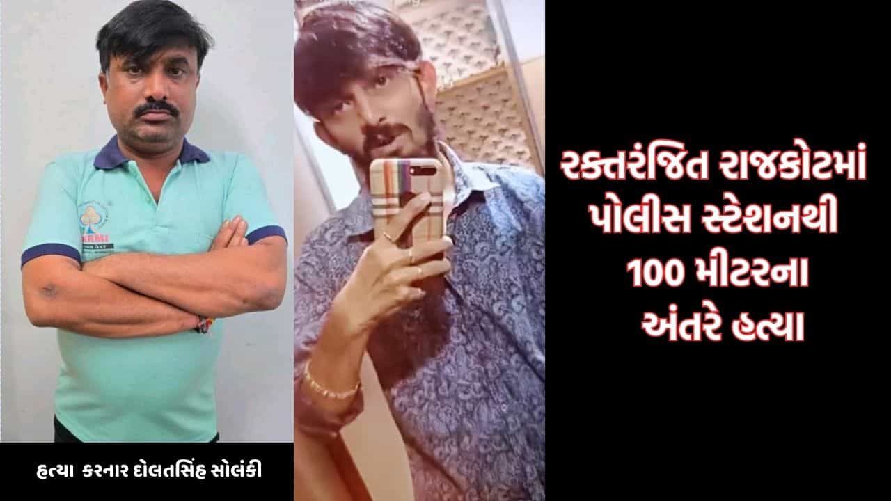 રાજકોટના ભક્તિનગર પોલીસ સ્ટેશનથી માત્ર 100 મીટર અંતર આવેલા નિલકંઠ સિનેમા નજીક સામાન્ય બોલાચાલીમાં હત્યાનો બનાવ બન્યો હતો. ભક્તિનગર પોલીસ સ્ટેશન નજીક ચાની કિટલી પર બેસવા બાબતે હાર્મિશ ગજેરા નામના યુવાનની ફાયનાન્સર દોલતસિંહ સોલંકી નામના શખ્સે તિક્ષ્ણ હથિયારના ઘા ઝીંકીને હત્યા કરી નાખી હતી. જો કે હત્યા બાદ દોલતસિંહ સોલંકી ફરાર થઇ ગયા હતા. જો કે ગોંડલ ચોકડી તરફ આવતા પોલીસે તેને પકડી પાડ્યા છે. પોલીસ સ્ટેશનથી માત્ર 100 મીટરના અંતરે હત્યાની વારદાત બન્યા બાદ પોલીસની કાર્યવાહી સામે સવાલો ઉઠ્યા હતા. પરિવારજનોએ પણ નારાજગી વ્યક્ત કરી હતી. ત્યારે પોલીસે આરોપીનું સરઘસ કાઢીને તેને કાયદાનું ભાન કરાવ્યું હતું.