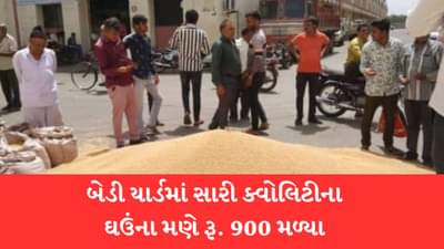 રાજકોટના બેડી માર્કેટીંગ યાર્ડમાં દરરોજ ઘઉંની હરરાજી થાય છે.રાજકોટના બેડી માર્કેટીંગ યાર્ડના ડિરેક્ટર અતુલ કમાણીએ ટીવીનાઇન સાથે વાતચીત કરતા કહ્યું હતું કે ઘઉંની જે હરરાજી થાય છે તેમાં ખેડૂતને મણે 450 થી 600 રૂપિયા ભાવ ઉપજે છે.આ વખતે માવઠાને કારણે ઘઉંની ગુણવત્તા ઘટી ગઇ છે જેના કારણે એવરેજ 450 થી 500 રૂપિયા મણે ઉપજે છે પરંતુ જો સારી ગુણવત્તા હોય તો 600 રૂપિયા સુધી ભાવ મળી શકે છે.જે ખેડૂતને 900 રૂપિયા ભાવ મળ્યો છે તે ખુબ જ સારો ભાવ કહેવાય પરંતુ બજારનો ભાવ આ નથી કોઇ ખેડૂતને ક્યારેક આવા ભાવ મળે છે.