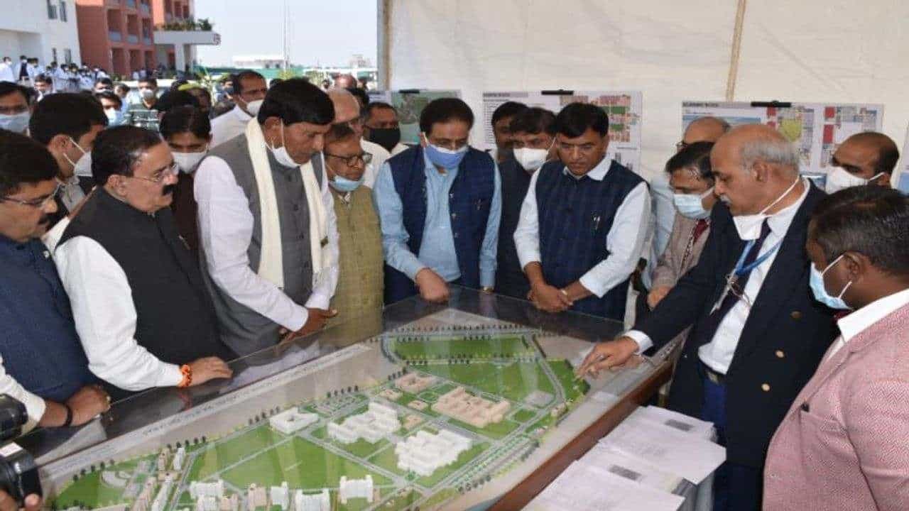 રાજકોટ (Rajkot) થી જામનગર રોડ તરફ પરાપીપળિયા ખંઢેરી નજીક ગુજરાતની પ્રથમ એઇમ્સ શરૂ થવા જઇ રહી છે. આજે એઇમ્સ (AIMS) ની મુલાકાતે કેન્દ્રીય આરોગ્ય મંત્રી મનસુખ માંડવિયા (Union Health Minister Mansukh Mandvia) એ એઇમ્સ હોસ્પિટલની મુલાકાત લીધી હતી. મનસુખ માંડવિયાએ એઇમ્સ ખાતે નિર્માણાધીન બિલ્ડીંગોની સમિક્ષા કરી હતી અને અધિકારીઓ સાથે બેઠક કરી હતી.