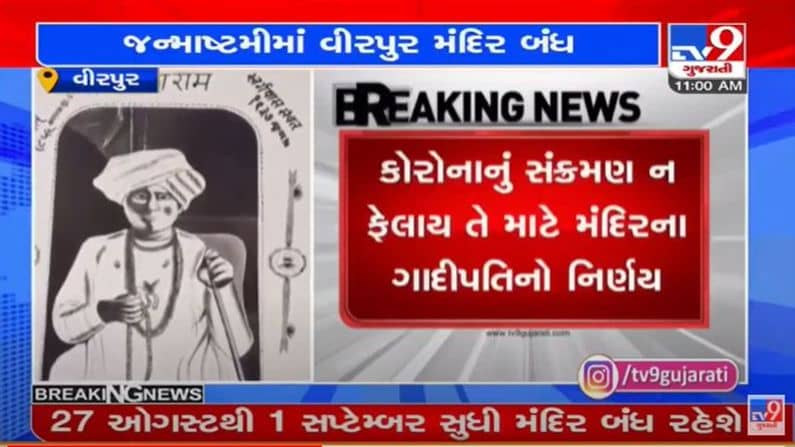 Rajkot : વીરપુર મંદિર જન્માષ્ટમીના પર્વ પર બંધ રાખવાનો નિર્ણય, 6 દિવસ મંદિર બંધ રહેશે