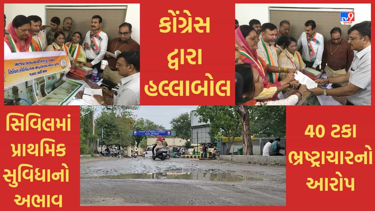 Rajkot: સૌરાષ્ટ્રની સૌથી મોટી હોસ્પિટલ હોય તો તે હાલ રાજકોટ સિવિલ હોસ્પિટલ છે. અહીં રાજકોટ સહિત આસપાસના તાલુકાઓ અને ગામના લોકો સારવાર માટે આવે છે. જો કે બીમારોની સારવાર કરતી આ સિવિલ હોસ્પિટલ ખુદ હાલ બીમાર હાલતમાં ભાસી રહી છે. હોસ્પિટલની અંદર જ બિસ્માર રસ્તા છે. જેમા વરસાદી પાણી ભરાઈ જવાથી સારવાર માટે આવતા લોકોને ભારે હાલાકી પડી રહી છે. હોસ્પિટલની અંદરના દૃશ્યો પણ ભયાનક છે. અહીં શૌચાલયો છેલ્લા ઘણા સમયથી બ્લોક થયા છે પરંતુ હોસ્પિટલના સત્તાધિશોને તેની કંઈ પડી નથી. બિસ્માર રોડ રસ્તા, ટોયલેટ બ્લોક, ઇલેક્ટ્રિક વિભાગ, પાણી અને ડ્રેનેજની લાઇન સહિતના અનેક પ્રશ્નો રહેલા છે. આ તમામ અસુવિધાઓને લઈને આજે કોંગ્રેસ દ્વારા સિવિલમાં હલ્લાબોલ કરવામાં આવ્યુ. વિપક્ષે પ્રોજેક્ટ ઈમ્પલીમેન્ટ યુનિટની કચેરીએ હલ્લાબોલ કર્યો અને વિભાગ તરફથી ભ્રષ્ટાચાર આચરવામાં આવતો હોવાનો આક્ષેપ કર્યો.