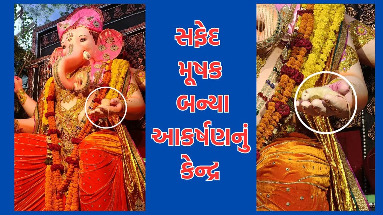 Rajkot: જે.કે.ચોક કા રાજા બન્યા આકર્ષણનું કેન્દ્ર, જ્યાં ગણપતિ દાદાની આસપાસ જીવંત સફેદ ઉંદરો કરે છે પ્રદક્ષિણા, જુઓ Video