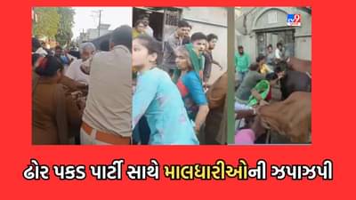 Rajkot: રાજકોટ શહેરમાં રખડતાં ઢોરને પકડવા જતી ઢોર પકડ પાર્ટી અને માલધારીઓ વચ્ચે ફરી એકવાર બબાલના દ્રશ્યો સામે આવ્યો છે. રાજકોટ મહાનગરપાલિકાની ઢોર પકડ પાર્ટી ગુરૂવારે સાંજના સમયે ગાયત્રીનગર મેઇન રોડ પર પહોંચી હતી ત્યારે માલધારીઓએ ઢોરને પકડતા અટકાવ્યા હતા. બંન્ને વચ્ચેની બબાલ એટલે સુધી પહોંચી હતી કે માલધારીઓ અને ઢોર પકડ પાર્ટીના કર્મચારીઓ આમને સામને આવી ગયા હતા અને ઝપાઝપી કરવા લાગ્યા હતા. સ્થિતિને જોતા પોલીસને જાણ કરવામાં આવી હતી અને પોલીસે સમગ્ર મામલો થાળે પાડ્યો હતો. માલધારીઓનો આક્ષેપ છે કે ઢોર પકડ પાર્ટીના સભ્યો ઘરમાં રાખેલા ઢોરને પણ પકડી રહ્યા છે અને જ્યારે તેઓ રજૂઆત કરવા માટે પહોંચ્યા ત્યારે ઢોર પકડ પાર્ટી દ્રારા ગેર વર્તન કરવામાં આવ્યું હતું અને હુમલો કર્યો હતો.