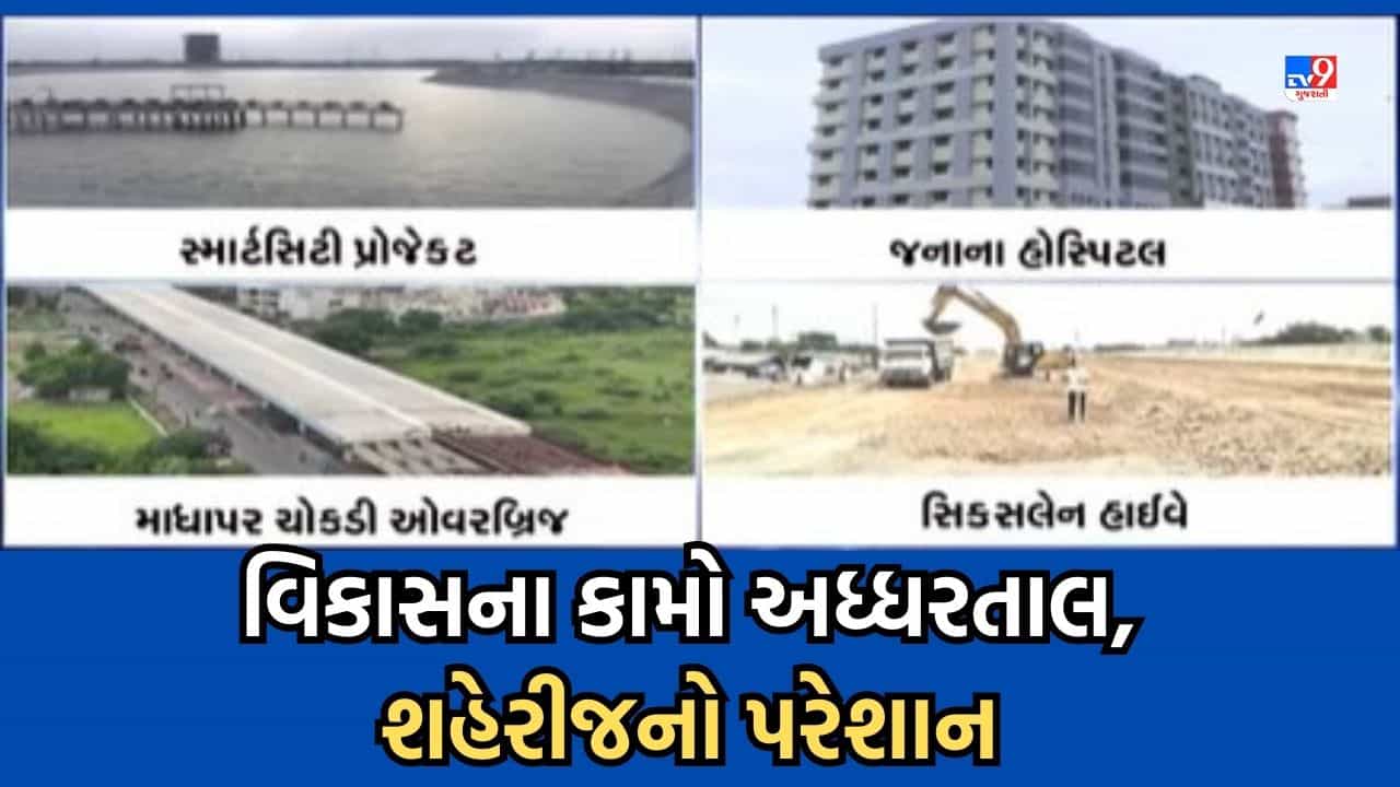 Rajkot: સૌરાષ્ટ્રની રાજનીતિનું એપીસેન્ટર જેને કહેવાય છે તે રાજકોટના વિકાસની ગતિને છેલ્લા કેટલાક વર્ષોથી બ્રેક લાગી ગઈ છે. વર્ષ 2020માં પૂર્વ મુખ્યમંત્રી વિજય રૂપાણીના સમયમાં જે કામોનું વિકાસકામોનું ખાતમુહૂર્ત કરવામાં આવ્યુ હતુ, તે કામો હજુ સુધી અધ્ધરતાલ છે અને આ કામો હજુ મંથરગતિએ છેલ્લા ત્રણ વર્ષથી બસ ચાલી જ રહ્યા છે. રાજકોટના મહત્વપૂર્ણ કહી શકાય તેવા 8 જેટલા મોટા પ્રોજેક્ટની જો વાત કરવામાં આવે તો આ પ્રોજેક્ટની સમય મર્યાદા પૂર્ણ થયાને ત્રણ ત્રણ વર્ષ વિતી ગયા હોવા છતા હજુ આ કામો પૂર્ણ થયા નથી.