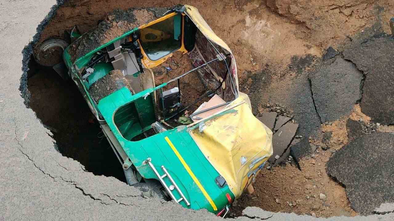 અમદાવાદ શહેરમાં 17 ફૂટ ઉંડા ભૂવામાં રિક્ષાચાલક રિક્ષા સાથે ખાબક્યો, ભારે જહેમત બાદ બહાર કઢાયો