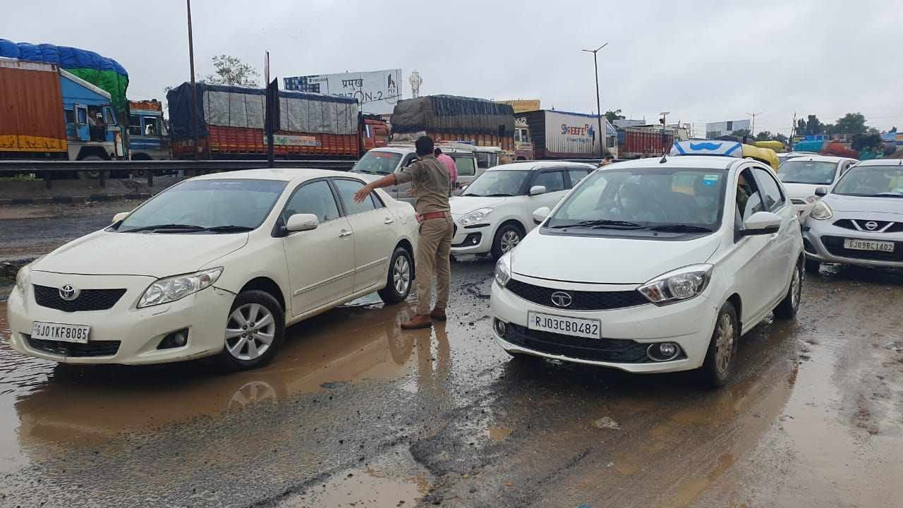 ઓવરબ્રિજના કામ ગોકળગાયની ગતીએ ચાલી રહ્યા છે. જેને લઈને ડાયવર્ઝન સાંકડા અને તુટેલા હોઈ ભારે વાહનો ઝડપથી પસાર થઈ શકતા નથી. પરિણામે લાંબો સમય સુધી ટ્રાફિક જામ રહે છે. હાલમાં ચોમાસાના દિવસોમાં વરસાદ પણ જોઈએ તેટલો વરસ્યો નથી એમ છતાં આભ ફાટ્યુ હોય અને રસ્તાઓ ધોવાઈ ગયા હોય એવી સ્થિતી નેશનલ હાઈવેની વર્તાઈ રહી છે.