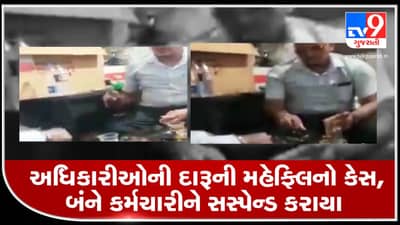 સુરત મહાનગરપાલિકાના અધિકારીઓની દારૂની મહેફિલના કેસમાં સુરત પાલિકા કમિશનર દ્વારા બંને કર્મચારીઓને ફરજ મોકૂફ કરવામાં આવ્યા છે. પાલિકના બે અધિકારીઓ દારૂની મહેફિલ માણતા હોવાનું સામે આવ્યું હતું, બીજા વર્ગના ક્લાર્ક વિરેન્દ્ર ઠાકોર અને ત્રીજા વર્ગના ક્લાર્ક વિશાલ મુનશીને ફરજ મોકૂફ કરાયા છે. વાયરલ વીડિયો મીડિયામાં વહેતા થયા બાદ આ પગલાં લેવામાં આવ્યા. ત્યારે આ મામલે સુરત પોલીસ શું કાર્યવાહી કરશે તે પણ એક સવાલ છે.