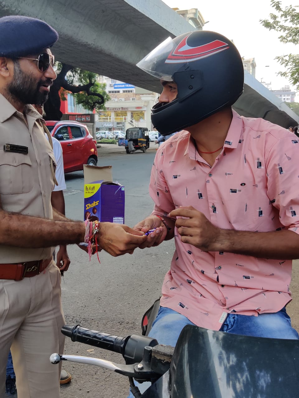 રાજ્ય સરકાર દ્વારા નવા ટ્રાફિક નિયમોનું અમલીકરણ કરાવવામાં આવી રહ્યું છે. વાહનચાલકોને આ નવા કાયદા પ્રમાણે મસમોટા દંડની જોગવાઈ કરવામાં આવી છે ત્યારે સુરત શહેરના એક પોલીસ કોસ્ટબલ દ્વારા દંડની જગ્યાએ તેના હાથમાં એક ચોકલેટની થેલી જોવા મળી રહી છે અને આ કોન્સ્ટેબલ દ્વારા જે વ્યક્તિ રોડ પર હેલ્મેટ પહેરીને જતા હોય તે લોકોને થેંક્યું કહી ચોકલેટ આપી રહ્યો છે.
