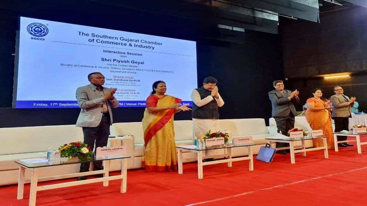 ધી સધર્ન ગુજરાત ચેમ્બર ઓફ કોમર્સ એન્ડ ઈન્ડસ્ટ્રીના (The Southern Gujarat Chamber Of Commerce) પ્લેટફોર્મ પરથી ભારત સરકારના વાણિજ્ય મંત્રી પીયુષ ગોયલ (Piyush Goyal) સમક્ષ મંત્રી દર્શના જરદોશ (Darshna Jardosh)ની હાજરીમાં જ સુરત એપેરલ પાર્ક SEZને ડીનોટીફાઈ કરવામાં આવેલી રજૂઆતને સફળતા મળી છે.