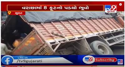 સુરત: 8 ફુટનો ભૂવો પડતા ફસાયો ટ્રક, મોટી દુર્ઘટના ટળી