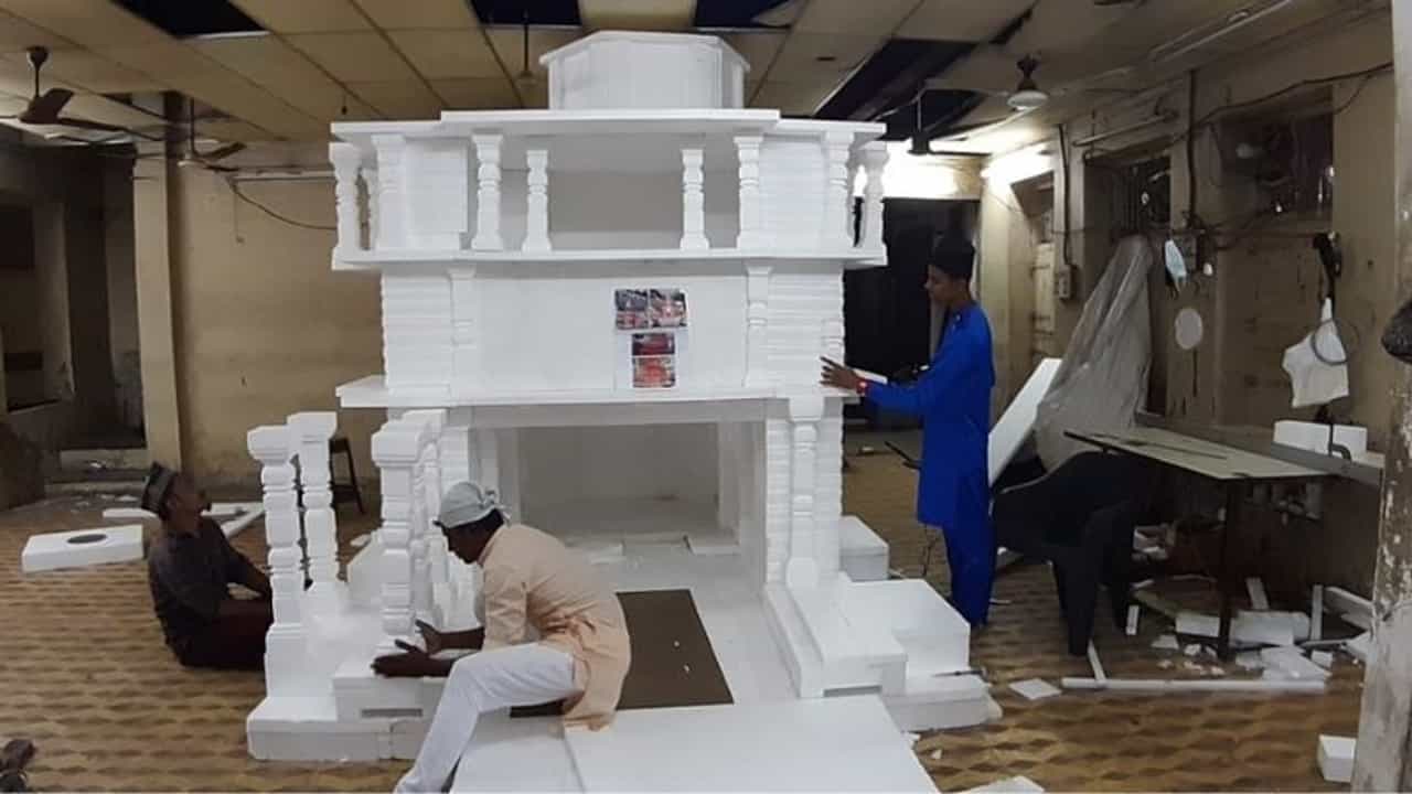 ત્યારે રામમંદિરની થીમ પર તૈયાર કરવામાં આવેલા આ મંડપનું કામ મુસ્લિમ કારીગરો દ્વારા કરવામાં આવી રહ્યું છે. સુરતમાં છ મુસ્લિમ બિરાદરો આ રામ મંદિરને આખરી ઓપ આપી રહ્યા છે. છ મુસ્લિમ કારીગરો 16 ફૂટ ઊંચા અને 14 ફૂટ પહોળા થર્મોકોલના મંદિરને બનાવી રહ્યા છે. જેમાં 174 જેટલા થર્મોકોલના પિલર પણ હશે.