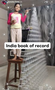 સિદ્ધિએ 210 જેટલા પ્લાસ્ટિકના ગ્લાસનો ઉપયોગ કરીને 72 ઇંચ એટલે કે 6 ફૂટનો ઉંચામાં ઉંચો પિરામિડ બનાવીને ઇન્ડિયા બુક ઓફ રેકોર્ડમાં સ્થાન મેળવ્યું છે.