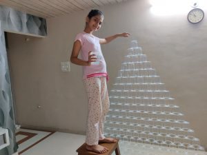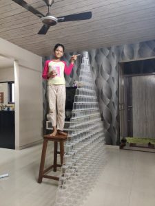 પહેલાં તેણે પ્લાસ્ટિકના 23 ફ્લોર બનાવ્યા હતા, 15 ફ્લોર પછી એવું થતું હતું કે હવાના કારણે, શ્વાસોશ્વાસને કારણે, બાજુમાંથી કોઈ પસાર થાય તેના કારણે પ્લાસ્ટિકના પિરામિડ બનતા રહી જતો હતો. સમય જતાં તેણીએ માઈક્રો ઓબ્ઝર્વેશન સ્કિલ વધતી ગઈ અને તેણીએ પિરામિડ બનાવવામાં વધુ ક્લિયરીટી અને ચોક્સાઈ રાખી.