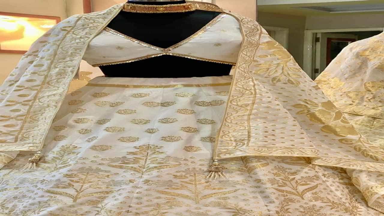 આ લહેંગા ચોળી પર ચાંદીના તાર પર સોનાનું વરખ ચડાવવામાં આવ્યું છે. જે તેને ખુબ ખાસ બનાવે છે. આવી લહેંગા ચોળી બનારસમાં હેન્ડલૂમમાં બનાવવામાં આવે છે.