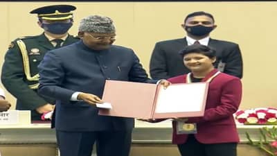 તાજેતરમાં જ દિવ્યાંગ દિવસે ભારતના રાષ્ટ્રપતિના(President ) હસ્તે મેડલ મેળવ્યા બાદ દિલ્હીથી સુરત એરપોર્ટ પર ઉતરેલી સુરતની દિવ્યાંગ દિકરી અન્વી ઝાંઝરુકીયાનું(Anvi Zanzrukiya ) સુરત એરપોર્ટ(Surat Airport ) પર પોલીસ બેન્ડની ધૂન સાથે જે શાનદાર સ્વાગત થયું તે જોઇને એરપોર્ટ પર ઉપસ્થિત અનેક પેસેન્જરોનું દિલ પણ ગદગદ થઇ ગયું હતું .
