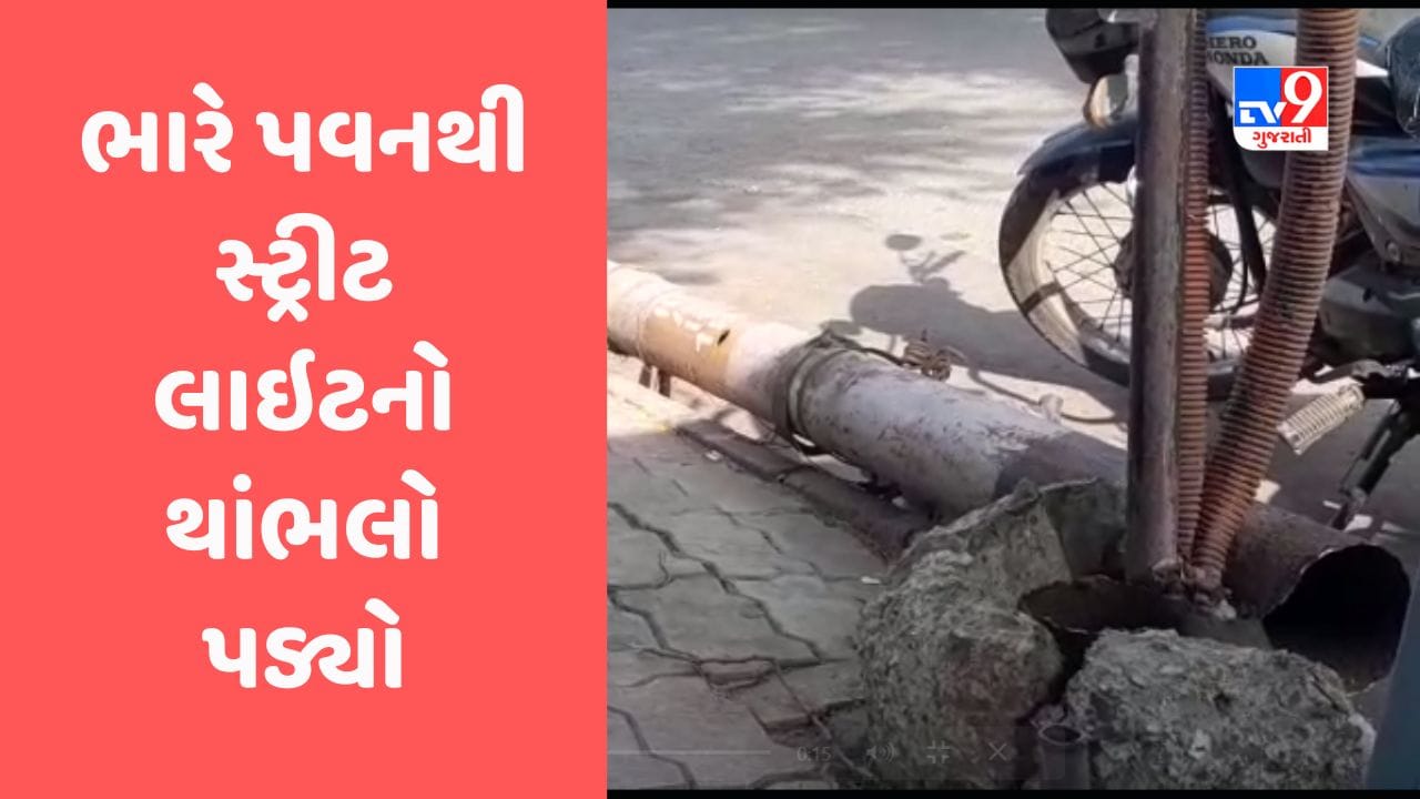 બિપોરજોય વાવાઝોડાના કારણે શહેરમાં ભારે પવન ફુકાઈ રહ્યો છે. શહેરમાં પવનની ગતિ 50 કિલોમીટરથી વધારે છે. જેના કારણે વૃક્ષો ધરાશાયી થવા સહિતના બનાવો બની રહ્યા છે. ત્યારે કોઝવે નજીક સ્ટ્રીટ લાઇટનો થાંભલો તૂટી પડ્યો હતો.