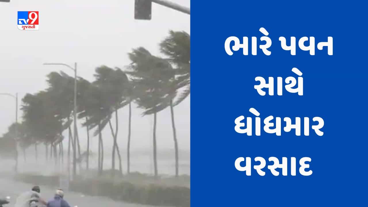 Cyclone Biparjoy : અરબી સમુદ્રમાં સર્જાયેલા પ્રેશરને કારણે ગુજરાત પર બિપરજોય વાવાઝોડું ત્રાટકવાનું સંકટ તોળાઇ રહ્યું છે. વાવાઝોડાની અસરના કારણે સૌરાષ્ટ્રમાં ધોધમાર વરસાદ વરસ્યો છે. તો આજે સવારથી જ સુરતમાં વાતાવરણમાં પલટો આવ્યો છે. સુરતમાં વાદળછાયા વાતાવરણ વચ્ચે ભારે પવન સાથે ધોધમાર વરસાદ વરસ્યો છે.