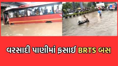 Surat: ડ્રીમ સિટી અને સ્માર્ટ સિટીના દાવા કરતી સુરત કોર્પોરેશનની પ્રિમોન્સુન કામગીરીની પોલ ખોલતો વધુ એક બોલતો પુરાવો સામે આવ્યો. સુરતમાં બપોરના સમયે 15થી 20 મિનિટ પડેલા ધોધમાર વરસાદમાં અનેક જગ્યાએ પાણી ભરાવાના દૃશ્યો સામે આવ્યા. સહારા દરવાજા રેલવે ગરનાળા પાસે કમર સુધીના પાણી ભરાઈ જતા મુસાફરો ભરેલી BRTS બસ અધવચ્ચે જ બંધ થઈ ફસાઈ ગઈ હતી. બસ બંધ પડતા અંદર બેસેલા મુસાફરોના જીવ તાળવે ચોંટ્યા હતા. સામાન્ય વરસાદમાં જ કમર સુધીના પાણી ભરાતા મનપાની પ્રિમોન્સુન કામગીરી માત્ર કાગળ પર હોવાની વધુ એકવાર પોલ છતી થઈ છે.