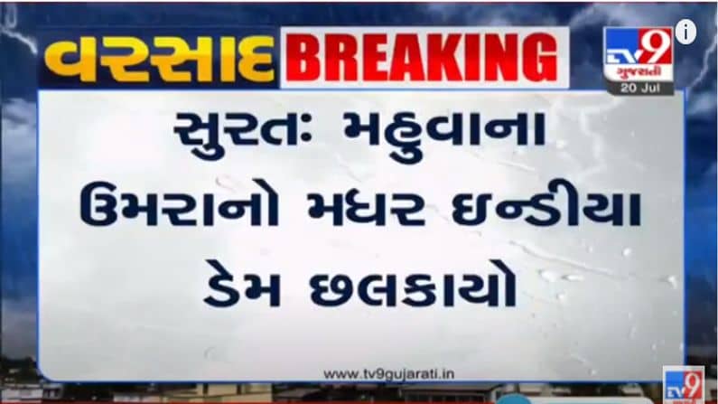 SURAT : ડાંગમાં સારો વરસાદ પડતા મહુવા તાલુકાના ઉમરા ખાતે આવેલ મધર ઇન્ડીયા ડેમ છલકાયો