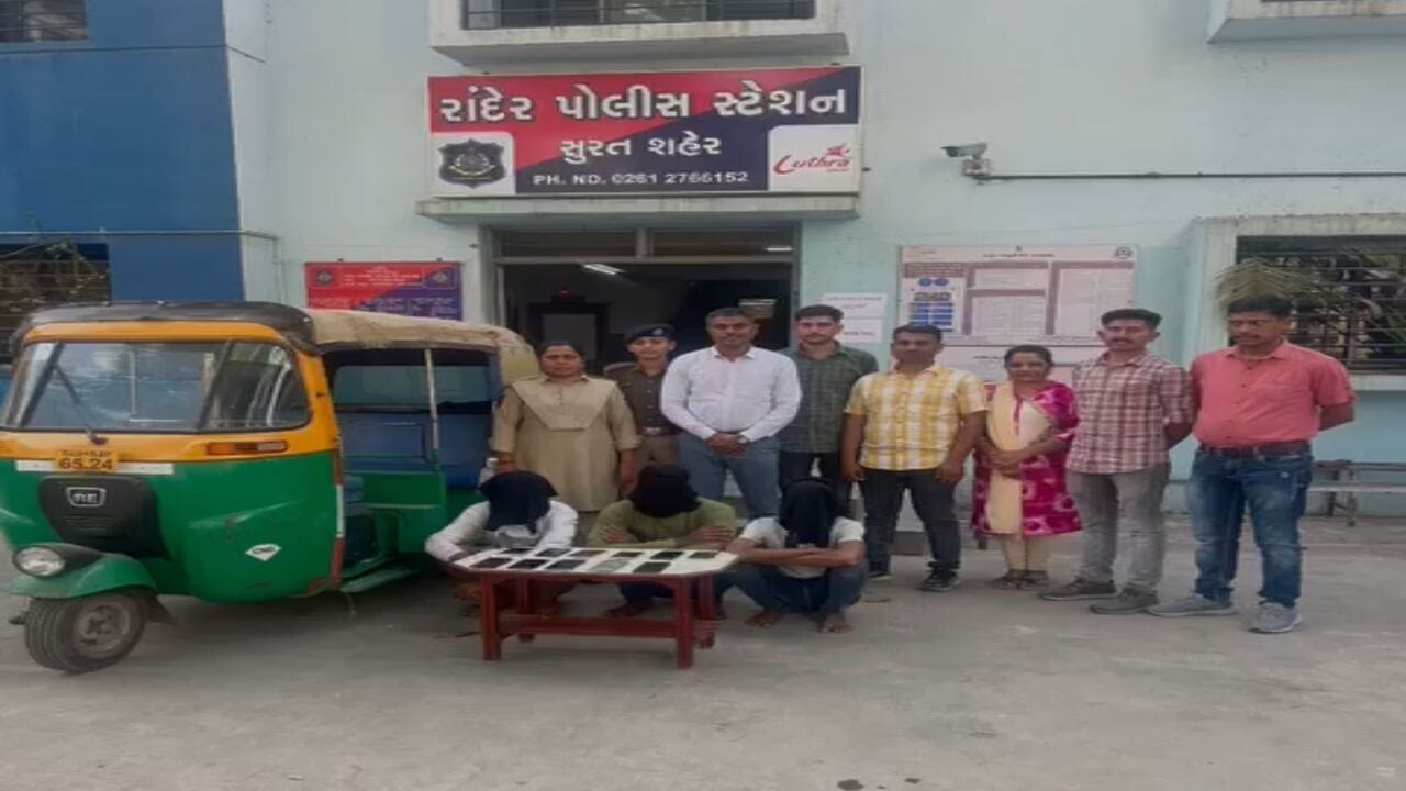 સુરત શહેરના અલગ અલગ વિસ્તારોમાં ફરી પેસેન્જરોને રીક્ષામાં બેસાડી નજર ચૂકવી મોબાઈલ તેમજ રોકડ રકમની ચોરી કરી લેતી ગેંગને રાંદેર પોલીસે ઝડપી પાડી છે. આ ઘટનામાં રાંદેર પોલીસે ત્રણ આરોપીની ધરપકડ કરી છે. તેમજ બે ગુનાના ભેદ ઉકેલી કાઢ્યા છે. એટલુ જ નહી આરોપીઓએ આવી રીતે સુરત અને અંકલેશ્વરમાંથી 30 જેટલા મોબાઈલ ફોનની ચોરી કરી હતી. જે પૈકીના 11 મોબાઈલ ફોન પણ પોલીસે રીકવર કર્યા છે.