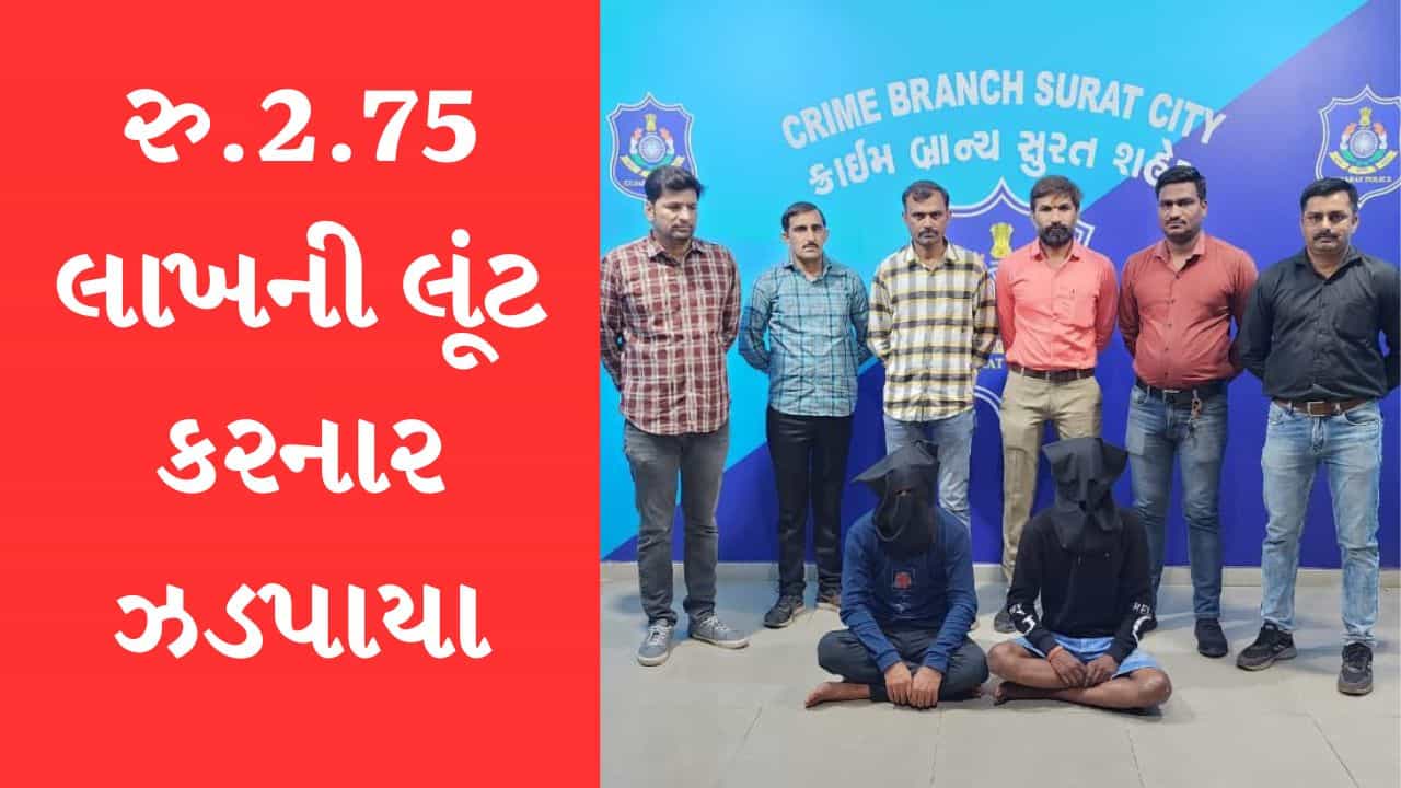 આ ઘટનામાં આરોપીને પકડવામાં સુરત ક્રાઈમ બ્રાંચને સફળતા મળી છે. સુરત ક્રાઈમ બ્રાંચની ટીમે આ ઘટનામાં લૂંટને અંજામ આપનાર 22 વર્ષીય સોનુંકુમાર દાનપાલ વર્મા અને વેડરોડ વિસ્તારમાં રહેતા અને ચાઇનીઝની લારી ચલાવતા 21 વર્ષીય અભિષેકસિંગ ઉર્ફે ચાઇનીસ તેજબહાદુરસિંગને ઝડપી પાડ્યા હતા. પોલીસે આરોપીઓ પાસેથી એક મોપેડ અને 24 હજારની રોકડ મળી કુલ 94 હજારની મત્તા કબજે કરી હતી. તેમજ ઝડપાયેલા આરોપી સોનુકુમાર વર્મા ગુનાહિત ઈતિહાસ ધરાવે છે ભૂતકાળમાં તેની સામે સલાબતપુરા પોલીસ મથકમાં ઘરફોડ ચોરીનો ગુનો પણ નોંધાયો હતો