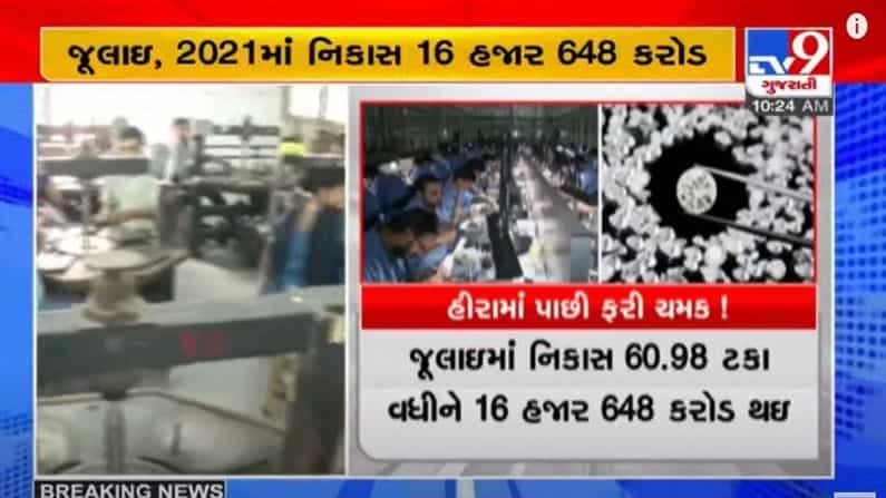 છેલ્લા દોઢ વર્ષથી કોરોના મહામારી વચ્ચે હીરા ઉધોગમાં તેજીની ચમક પાછી ફરી છે. જુલાઈ મહિનામાં હીરાની નિકાસમાં 26 ટકાનો વધારો જોવા મળ્યો છે.