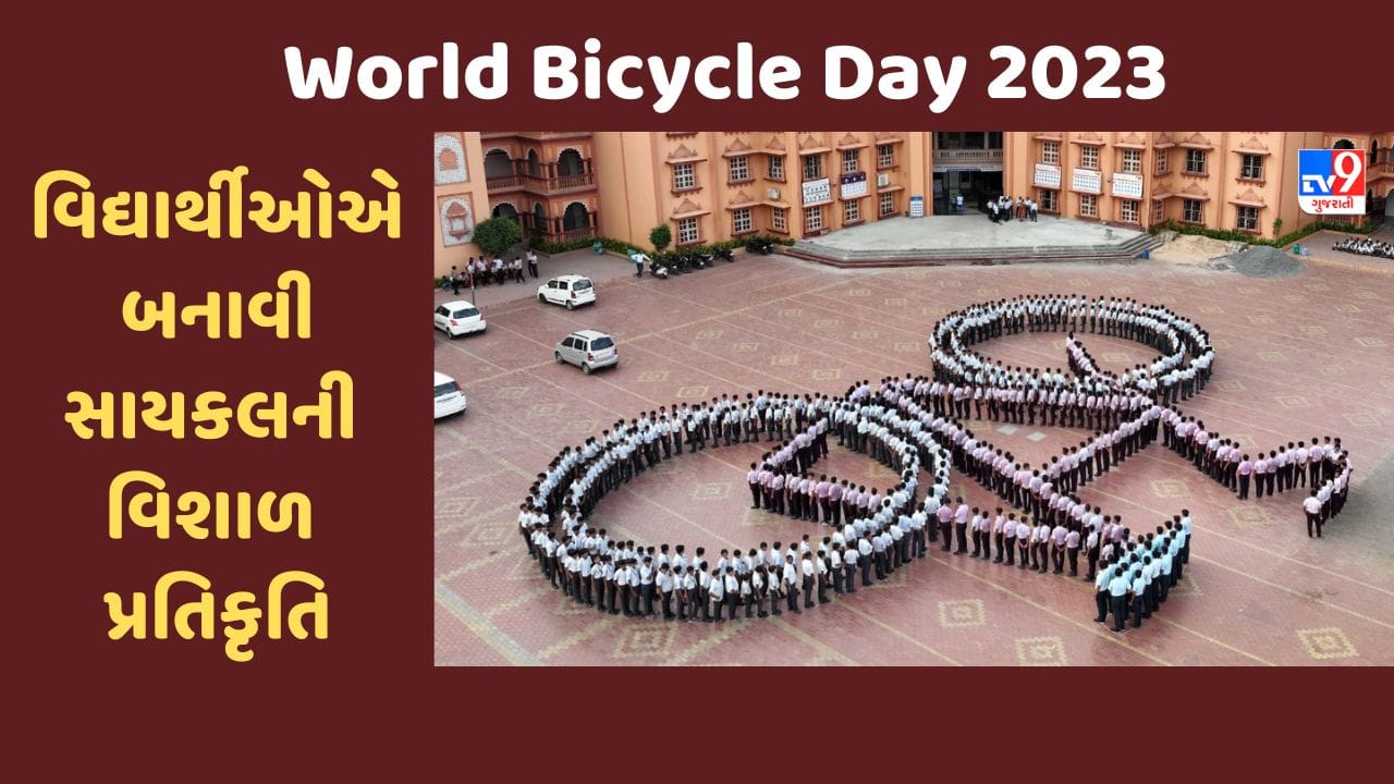 World Bicycle Day 2023 : 3 જૂન વિશ્વ સાયકલ દિવસ તરીકે ઉજવવામાં આવે છે . જેના ભાગરૂપે સુરતમાં વેડરોડ સ્થિત શ્રી સ્વામિનારાયણ ગુરૂકુળના પરિસરમાં 500 જેટલા વિદ્યાર્થીઓએ સાયકલની વિશાળ માનવ પ્રતિકૃતિ બનાવી હતી. વિદ્યાર્થીઓ દ્વારા સામૂહિક રીતે સિમ્બોલ બનાવી સાયકલના ઉપયોગ અને જાગૃત્તિનો સંદેશ જનજન સુધી પહોંચાડવાની ઉમદા પહેલ કરવામાં આવી હતી.