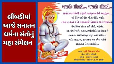 Surendranagar : સાળંગપુરમાં હનુમાનજીના વિવાદિત ભીંતચિત્રો (Salangpur Hanuman Temple Controversy) હટાવવામાં આવ્યા છે, ત્યારે સુરેન્દ્રનગરના લીંબડીમાં આજે મળનારા સનાતન ધર્મના સંતોના મહાસંમેલન પર સૌની નજર છે. લીંબડીના નિમ્બાર્ક પીઠ સ્થિત મોટા મંદિર ખાતે આયોજીત સંત સંમેલનમાં રાજ્યભરમાંથી મોટા સંતો હાજર રહેશે.