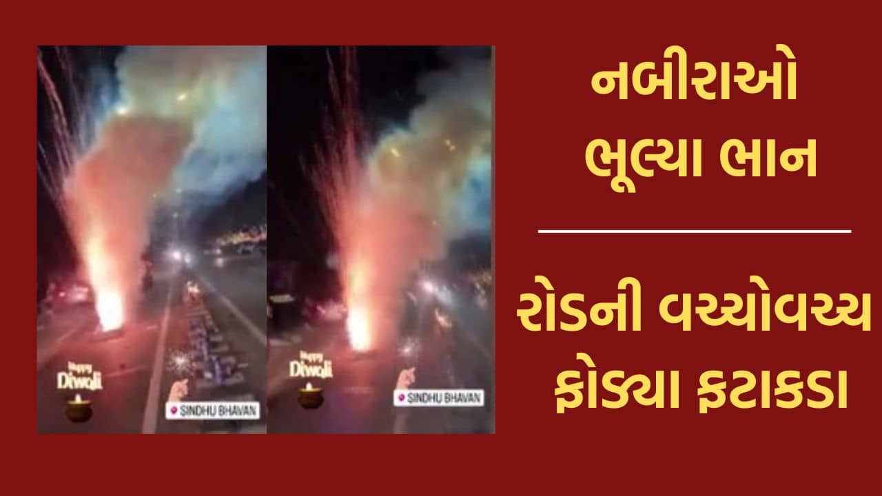દિવાળીના પર્વ દરમિયાન અમદાવાદ શહેરમાં ફરી એક વાર અસામાજિક તત્વો બેફામ બન્યા છે. જીહાં, કેટલાંક શખ્સોએ સિંધુભવનમાં જાહેર રોડ પર વચ્ચોવચ ફટાકડા ફોડ્યા. જેનો વીડિયો સોશિયલ મીડિયામાં વાયરલ થયો છે. જેમા સ્પષ્ટ જોઇ શકાય છે કે નબીરાઓએ બેફામ રીતે રોડ પર જ ફટાકડા ફોડીને ઉજવણી કરી. જેના કારણે અનેક વાહન ચાલકોને હાલાકી પડી.