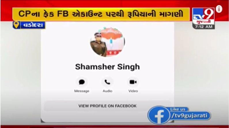 વડોદરાનાં (Vadodara) પોલીસ કમિશ્નરનું ફેક ફેસબુક એકાઉન્ટ બનાવવામાં આવ્યું છે. સીપી શમશેરસિંહનો ફોટો ઇન્ટરનેટ પરથી લઈ બોગસ એકાઉન્ટ બનાવ્યું હતું. અને તેમના મિત્રો પાસે નાણાની માંગણી કરી.