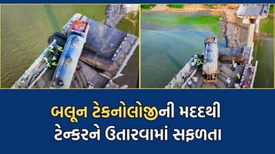 અંતે 27 દિવસ બાદ રાહતનો શ્વાસ.. આખરે ટેન્કર નીચે આવશે. છેલ્લા 27 દિવસથી આ ટેન્કર ગંભીરા બ્રિજ પર લટકેલુ હતુ. 9 જૂલાઈએ ગંભીરા બ્રિજ તૂટ્યા બાદ આ ટેન્કર ચમત્કારિક રીતે તૂટેલા એક સ્પાન પર લટકી રહ્યુ હતુ. છેલ્લા 27 દિવસથી તંત્ર દ્વારા તેને ઉતારવાના પ્રયાસ થઈ રહ્યા હતા પરંતુ તમામ પ્રયાસ નિષ્ફળ જઈ રહ્યા હતા. જે બાદ ટેન્કરને ઉતારવા માટે ઍર બલૂન ટેકનોલોજીનો ઉપયોગ કરવામાં આવ્યો હતો.