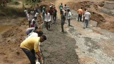 વડોદરા (Vadodara) જિલ્લાના ડભોઇ તાલુકાના આશગોલ અને પરાને જોડતા નાળા ઉપર ગ્રામજનોએ જાતે જ રસ્તો બનાવવાની કામગીરી શરુ કરી છે. આ બ્રિજ પર ચોમાસામાં દર વર્ષે હેરણ નદીનું (Heran River) પાણી ફરી વળતુ હોય છે. જેના કારણ વાહન વ્યવહાર તેમજ વારંવાર સંપર્ક તૂટી જતો હતો. ગત વર્ષે માર્ગ મકાન વિભાગ દ્વારા છલીયા નાળામાંથી બ્રિજ બનાવવા માટેની કામગીરી કોન્ટ્રાકટરને (Road Contractor) સોંપવામાં આવી હતી. પણ ધીમીગતિની કામગીરીને કારણે 6 માસમા માત્ર 2 જ બીમ ઉભા થયા છે. જેને પગલે સ્થાનિકોમાં રોષ ફેલાયો છે.