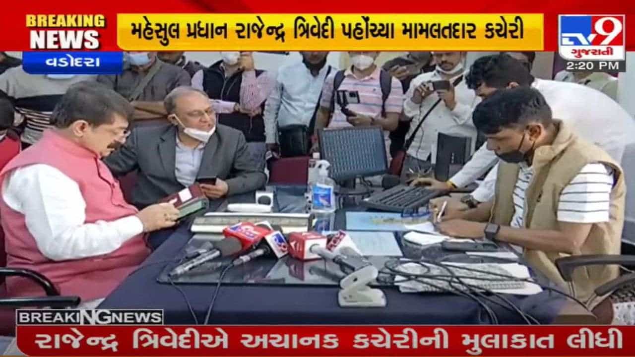 વડોદરા મામલતદાર કચેરીએ મહેસૂલ પ્રધાન રાજેન્દ્ર ત્રિવેદીએ અચાનક મુલાકાત લીધી. જ્યાં તેમણે એક મહિલાની પણ મદદ કરી. મહિલા છેલ્લાં કેટલાય દિવસથી આવકના દાખલા માટે ઘક્કા ખાઇ રહી હતી. મહિલાની પરિસ્થિતિ ખૂબ જ સામાન્ય હતી.