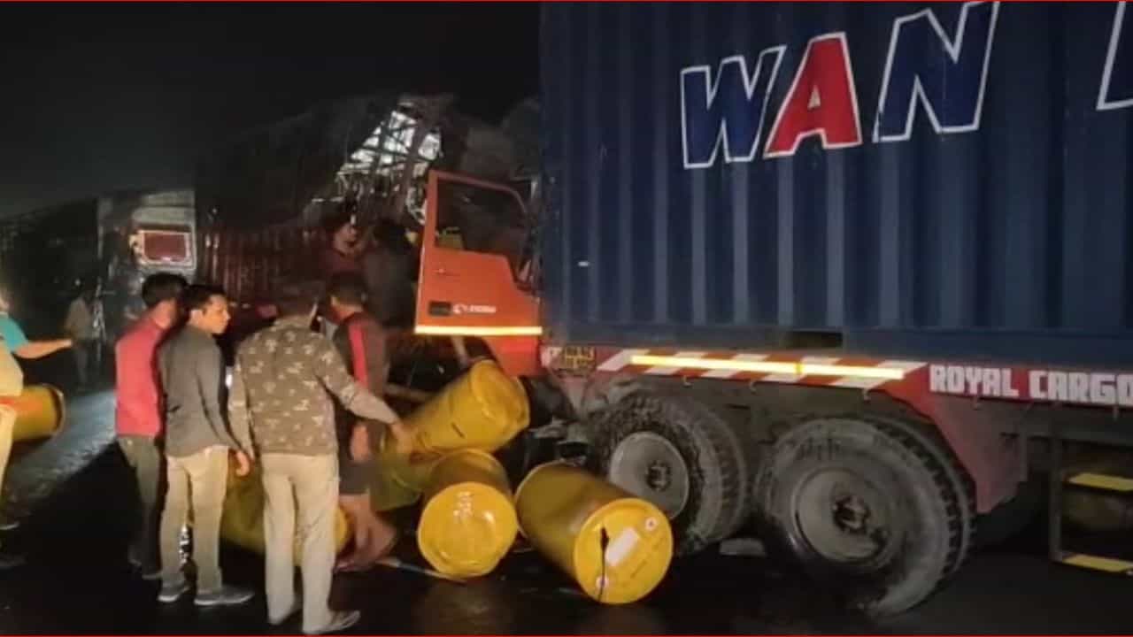 રાજ્યભરમાં સતત અકસ્માતની બનતી ઘટના વચ્ચે એક અકસ્માતની ઘટના વલસાડ નેશનલ હાઈવે 48 પર નંદાવલા નજીક સામે આવી છે. અંકલેશ્વરથી કેમિકલના ડ્રમ ભરીને જઈ રહેલો ટેમ્પો રોડ પર ઉભેલા કન્ટેનર સાથે અથડાતા ગમખ્વાર અકસ્માત સર્જાયો હતો. ધડાકાભેર અકસ્માતમા આઈસર ચાલકનું કેબીનમાં ફસાતા ઘટના સ્થળે કરુણ મોત નિપજ્યું હતું. આઈસર ચાલકના મૃતદેહને 2 કલાકની ભારે જહેમત બાદ બહાર કાઢવામાં આવ્યો હતો. આ સમગ્ર ઘટનાની જાણ થતા રુરલ પોલીસ અને 108ની ટીમ તાત્કાલીક ધોરણે તે ઘટના સ્થળે પહોંચી હતી અને કામગીરી હાથ ધરી હતી.