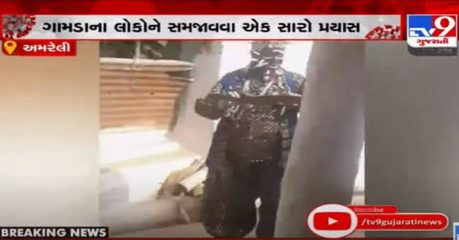 કોરોના મહામારી વચ્ચે રાજુલાનો એક વીડિયો વાયરલ થયો છે, જેમાં ગામડાના લોકોને સમજાવવા એક સારો પ્રયાસ હાથ ધરાયો છે. કોરોના બની ગામડામાં ફરતો કોરોના માનવ આ વીડિયોમાં જોઈ શકાય છે.