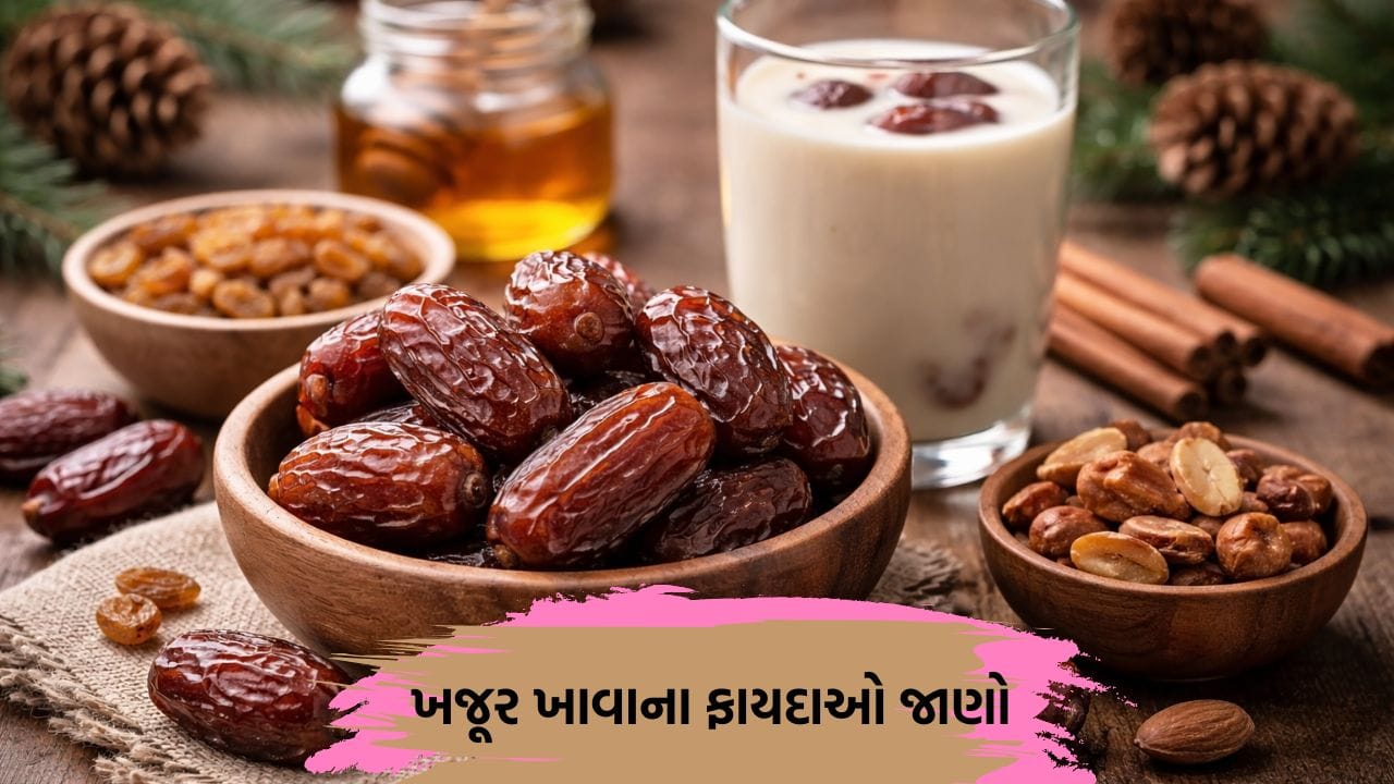 આજે અમે તમને ખજૂરના ફાયદા વિશે જણાવવા જઈ રહ્યા છીએ. ખજૂરમાં ફાઇબર, પોટેશિયમ, આયર્ન, કેલ્શિયમ, મેગ્નેશિયમ અને વિટામિન બી સહિત ઘણા જરૂરી પોષક તત્વો જોવા મળે છે, જે શરીરને અનેક રોગોથી બચાવવામાં મદદ કરે છે. હાડકાંને મજબૂત બનાવવાથી લઈને પાચન સુધારવા સુધી, તે શરીરને ઘણા ફાયદા પૂરા પાડે છે.