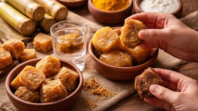 શિયાળાના હળવા તડકામાં બેસ્યા પછી ખાવામાં આવતા ગોળનો સ્વાદ હંમેશા આકર્ષક હોય છે. આપણે ઘણીવાર ખાંડ કરતાં ગોળ પસંદ કરીએ છીએ કારણ કે તે સ્વસ્થ માનવામાં આવે છે. તેમાં આયર્ન, ખનિજો અને ઉર્જા ભરપૂર હોય છે, જે શરીર માટે ફાયદાકારક છે. પરંતુ શું તમે જાણો છો કે આ સ્વસ્થ આદત ક્યારેક તમારા સ્વાસ્થ્ય માટે ખતરો બની શકે છે? બજારમાં વેચાતો ચમકતો, સોનેરી ગોળ હંમેશા વાસ્તવિક હોતો નથી. ઘણીવાર, તેને આકર્ષક અને સ્વચ્છ દેખાવા માટે ખતરનાક રસાયણો ઉમેરવામાં આવે છે. તમને લાગે છે કે તમે કુદરતી અને સ્વસ્થ ગોળ ખાઈ રહ્યા છો, પરંતુ વાસ્તવમાં, તમે અજાણતાં ભેળસેળયુક્ત ગોળનું સેવન કરી રહ્યા છો.