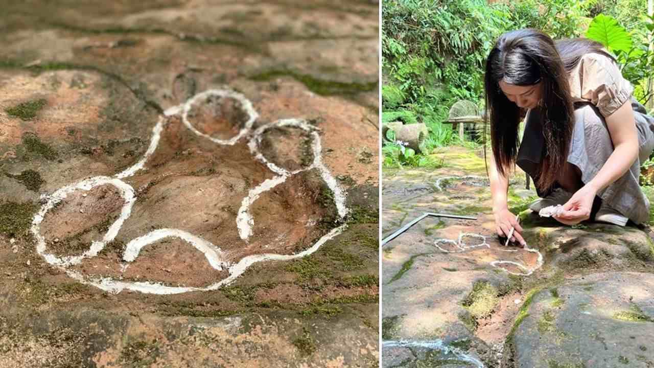 ડાયનાસોરના પગના નિશાન શોધનાર આ વ્યક્તિનું નામ છે ઓ હોંગતાઓ. આ વ્યક્તિને ચીનના સિચુઆન વિસ્તારના લેશાન શહેરમાંથી એક રેસ્ટોરેન્ટમાંથીના કોર્ટયાર્ડમાં આ ડાયનાસોરના પગના નિશાન જોવા મળ્યા હતા. તે આ રેસ્ટોરેન્ટમાં ગ્રાહક તરીકે ગયો હતો અને તેને એક ટેબલના નીચે આ નિશાન જોવા મળ્યા હતા. ચીનના વિશેષજ્ઞોની ટીમે આ નિશાનની પૃષ્ટિ પણ કરી છે.