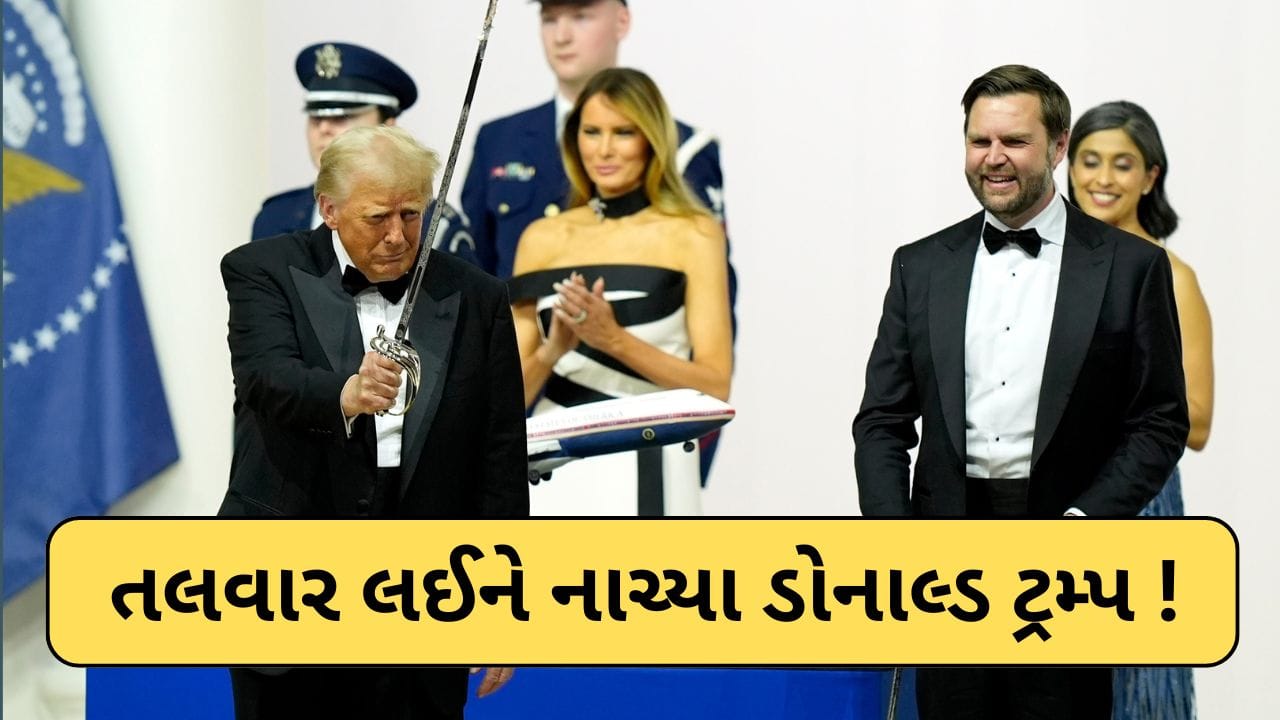 ટ્રમ્પ તલવાર સાથે નાચતા જોવા મળ્યા. તેમણે હાતમાં તલવાર લઈ નાચતા નાચતા કેક પણ કાપી હતી. ટ્રમ્પની પત્ની અને ફર્સ્ટ લેડી મેલાનિયા ટ્રમ્પ પણ તેમની સાથે જોવા મળ્યા હતા.