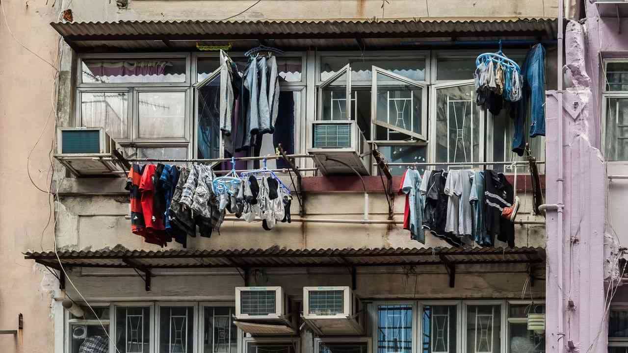 બાલ્કનીમાં અથવા બારી પર કપડા સૂકવવા.