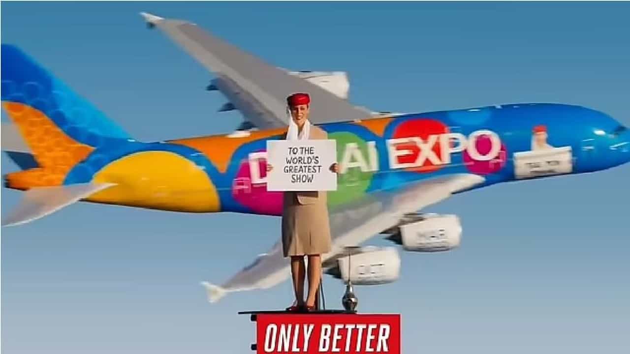 એક હાથમાં પ્લેકાર્ડ્સ સાથે નિકોલ મજાકમાં કહે છે, ‘હું હજી પણ અહીં છું!’ તે પછી પ્લેકાર્ડ્સ બદલે છે જેમાં લખ્યુ છે કે ‘ મિત્રો આખરમાં તમે આવી જ ગયા. બસ એટલામાં જ એક વિશાળ અમીરાત A380 એરબસ ત્યાંથી પસાર થાય છે, જે વિશ્વનું સૌથી મોટું પેસેન્જર પ્લેન છે.