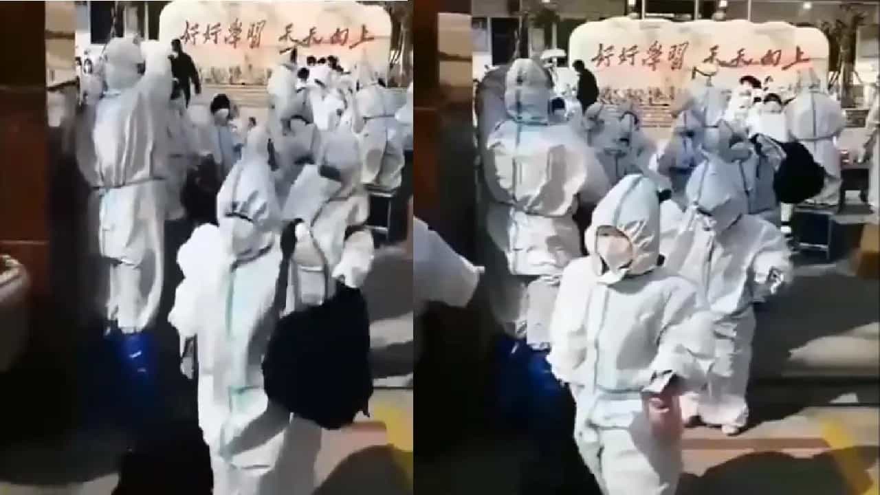 કોરોના વાયરસનો સામનો કરવા માટે ચીને (China) ‘ઝીરો કોવિડ પોલિસી’ અપનાવી છે. જેના કારણે લોકોને ભારે મુશ્કેલીનો સામનો કરવો પડી રહ્યો છે. દેશના સૌથી મોટા શહેરોમાંના એક શાંઘાઈમાં લોકડાઉન (Shanghai Lockdown) અમલમાં છે. આ લોકડાઉન પણ 26 એપ્રિલ સુધી લંબાવવામાં આવ્યું છે. દરમિયાન શાંઘાઈથી એક આશ્ચર્યજનક વીડિયો સામે આવ્યો છે, જેમાં નાના બાળકો PPE કિટ પહેરેલા જોવા મળે છે. શાંઘાઈના આ વીડિયોમાં જોવા મળે છે કે, નાના બાળકો સફેદ PPE કીટમાં માથાથી પગ સુધી ઢાંકીને શાળાએ જઈ રહ્યા છે. આ બાળકોએ ચહેરા પર માસ્ક પણ પહેર્યા છે. જેના કારણે તેમની આંખો જ જોઈ શકાય છે.