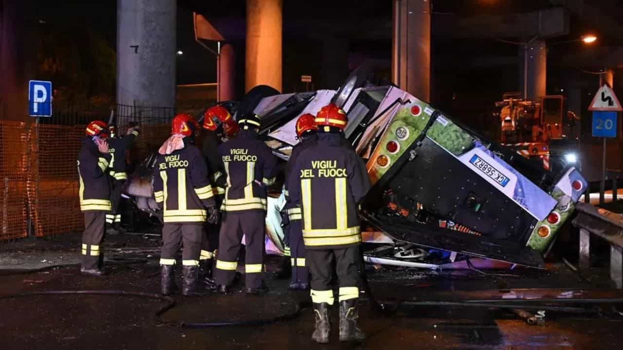 મીડિયા રિપોર્ટ્સ અનુસાર, બસ બેરિયર તોડીને બ્રિજથી લગભગ 30 મીટર (100 ફૂટ) નીચે રેલવે ટ્રેક પાસે પડી હતી. તેમણે કહ્યું કે કેટલીક વીજ લાઈનો સાથે અથડાયા બાદ તેમાં આગ લાગી હતી. ગૃહમંત્રી માટ્ટેઓ પિઆન્ટેડોસીએ જણાવ્યું હતું કે મિથેન ગેસના કારણે આગ ઝડપથી ફેલાઈ હતી. તેમણે કહ્યું, મને ડર છે કે મૃત્યુઆંક વધશે.