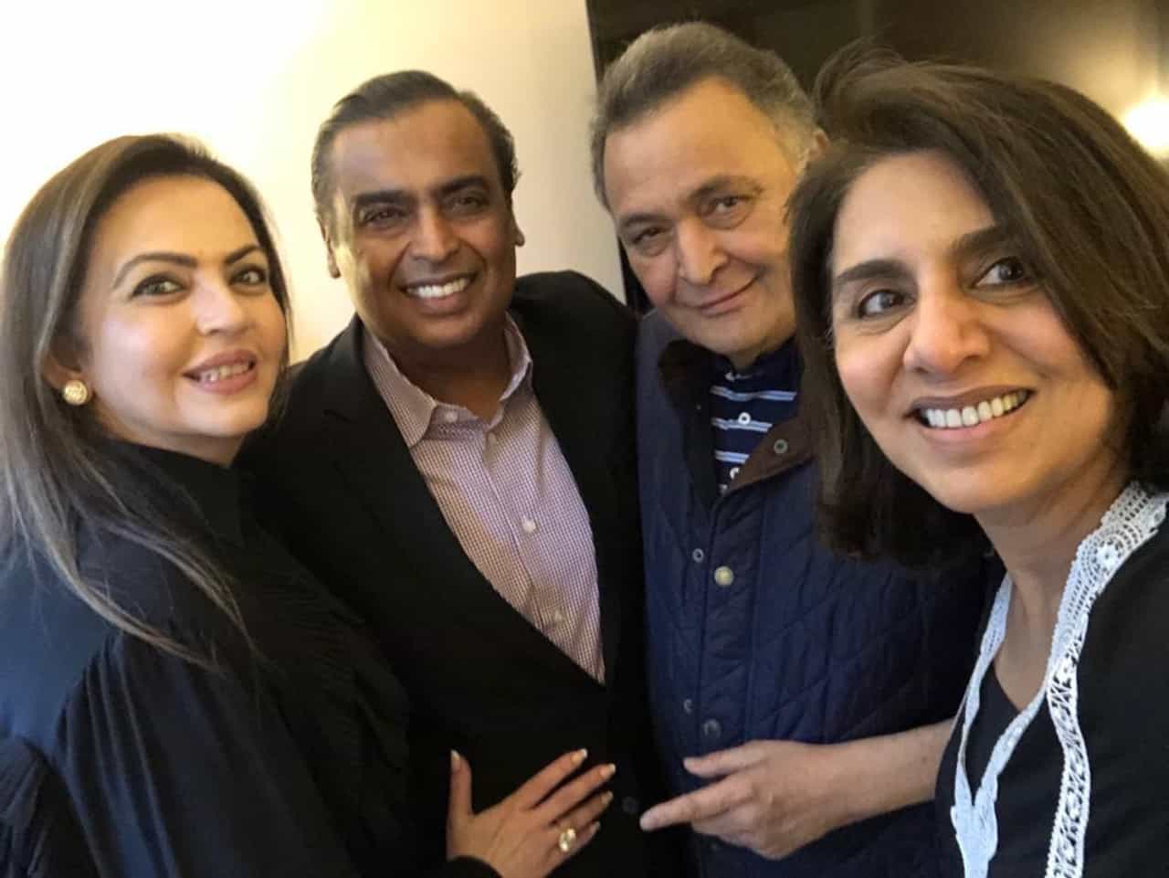 ઋષિ કપૂરની ટ્રીટમેન્ટ દરમિયાન પત્ની નીતૂ કપૂર પણ સાથે છે. નીતૂ કપૂર સોશિયલ મીડિયામાં ઋષિ કપૂરની સાથે જોડાયેલી તમામ ટવીટ કરે છે. તો ઋષિ કપૂર પોતાને વ્યસ્ત રાખવા સોશિયલ મીડિયામાં પોતાનો સમય પસાર કરે છે. ત્યારે ઋષિ કપૂરે પોતાના ટવીટ દ્વારા એક ફોટો શેર કર્યો છે. મુકેશ અંબાણી અને નીતા અંબાણી સાથેની મુલાકાત સમયનો આ ફોટો સોશિયલ મીડિયામાં ફરી રહ્યો છે. ફોટોમાં ઋષિ કપૂરના ચહેરા પર સ્માઈલ જોઈને લાગે છે કે તેમનું સ્વાસ્થય સુધરી રહ્યું હશે.