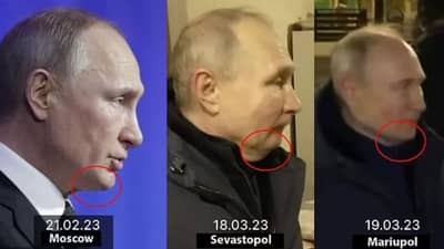 આ નિશાનોની તુલના રશિયન રાષ્ટ્રપતિની તસવીરોમાં કરવામાં આવી રહી છે, જેમાં ઘણો તફાવત જોવા મળી રહ્યો છે. ફૂટેજમાં કહેવાયું છે કે નિષ્ણાતોએ ઘણા સમય પહેલા જ રશિયન રાષ્ટ્રપતિની બોડી ડબલ્સ બતાવી છે. પુતિનના કાનની નીચેનો મણકો સતત બદલાતો રહે છે. તેના ચહેરા પર એક નાનો તલ પણ બદલાતો રહે છે. આ સિવાય એક પુતિનના ચહેરા પર કરચલી છે, જ્યારે બીજા પુતિનના ચહેરા પર નાની અને તૂટેલી કરચલીઓ છે.